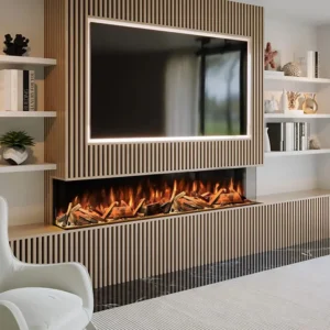 A media wall is a custom-built stud wall structure designed to house your television, soundbar, and an integrated fire. In the UK, the trend has shifted toward the built-in electric fireplace wall because it offers a flush, clean finish without the need for traditional chimneys or flues.